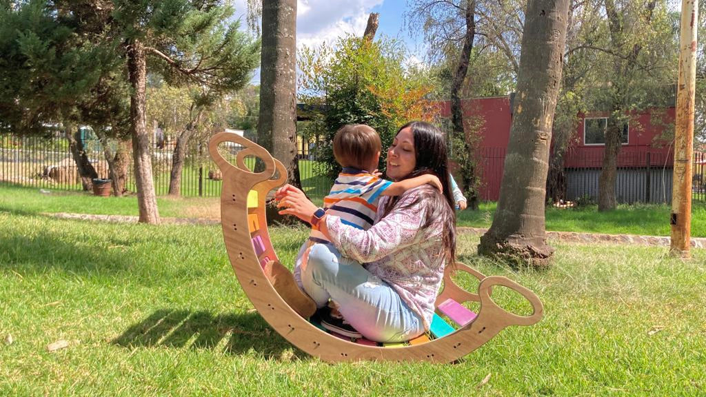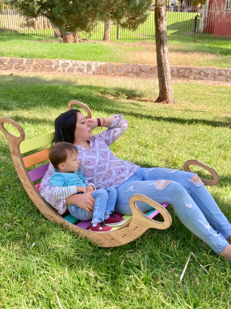 Pero también me encanta que cuando quiero relajarlo me subo con él y nos balanceamos despacio, ya sea que ponga música relajante o lea un cuento y él se termine arrullando sin tener que cansarme por traerlo en mis brazos