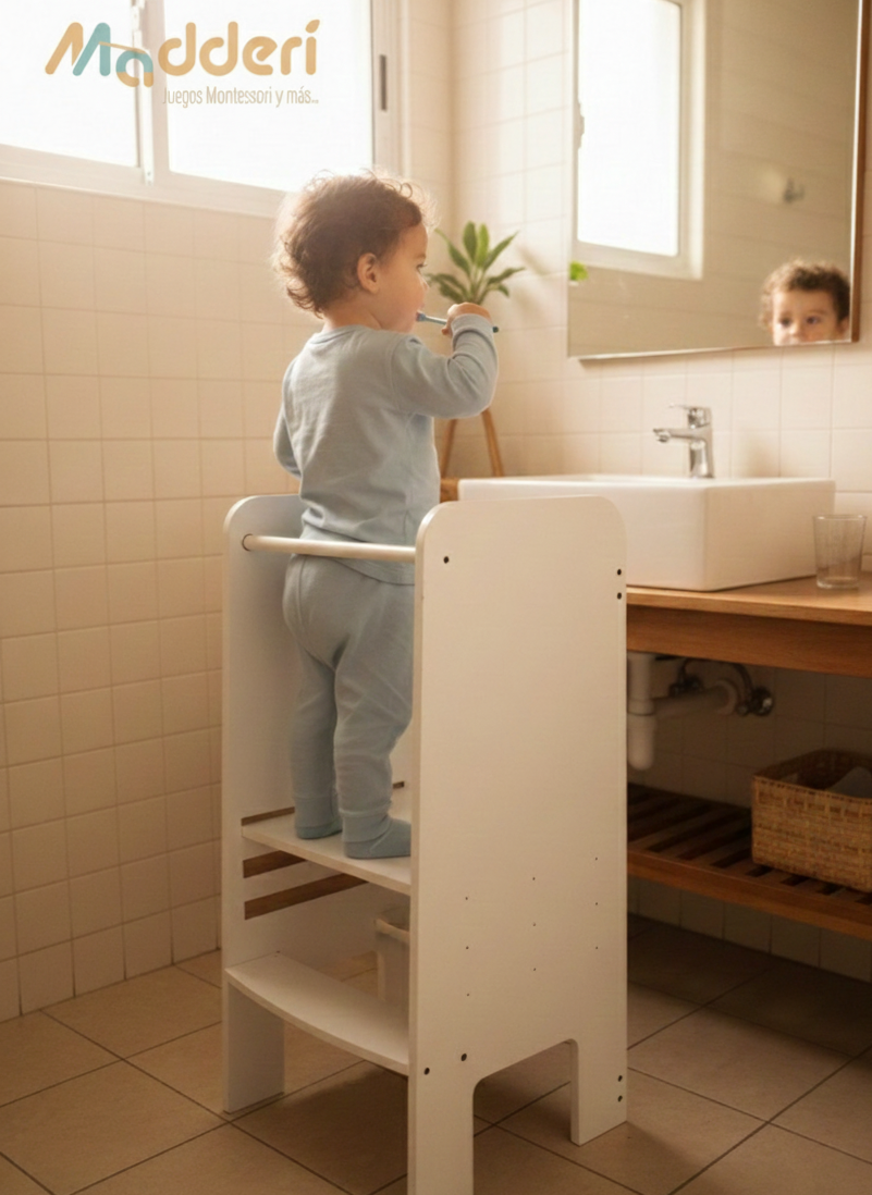 incluye la torre de aprendizaje, utensilios de cocina para niños y un recetario (este en digital)